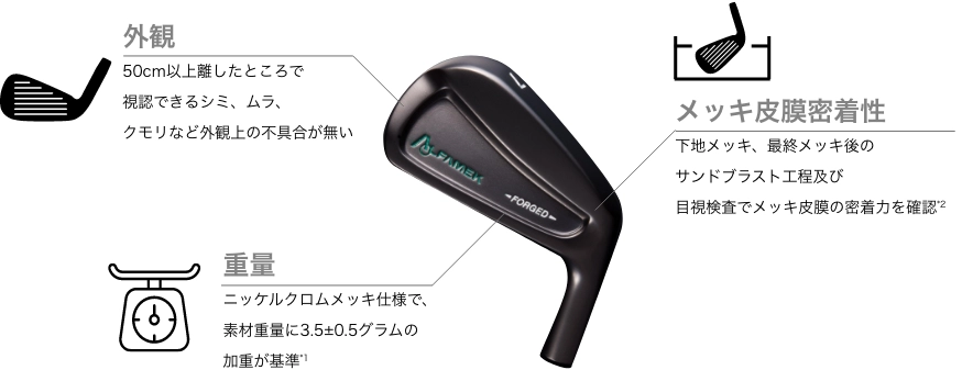 アルファメックでは検査基準を持ち、合格したゴルフヘッドを出荷させていただいています。